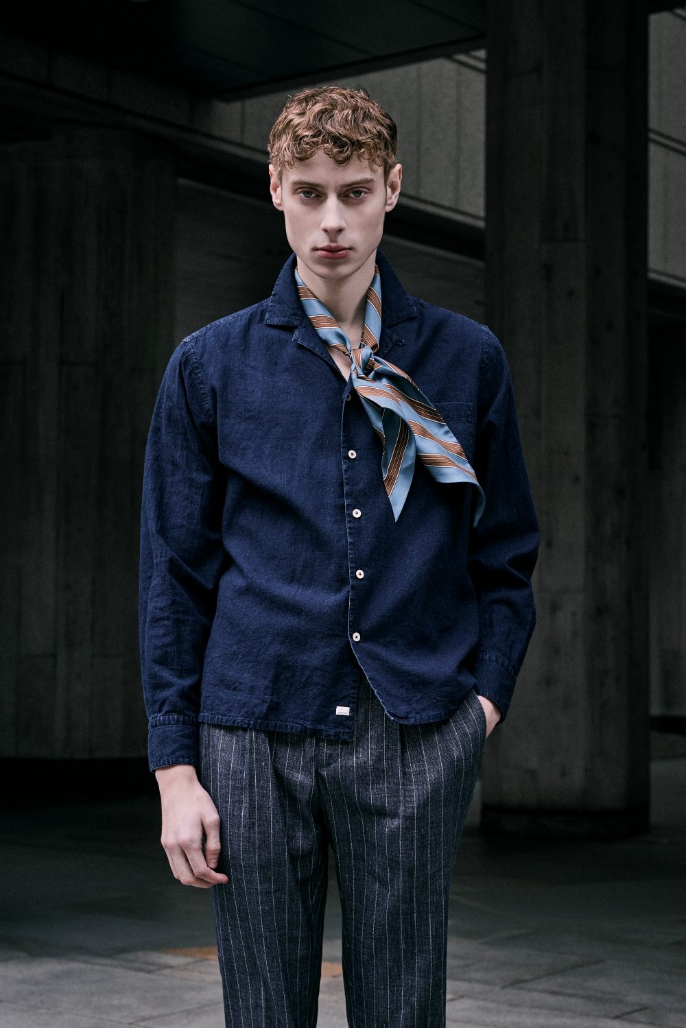 春夏らしいリネン混の軽量ストレッチ素材。その涼しげな色合いと品よく覗く細いストライプがリラックス感を演出します。